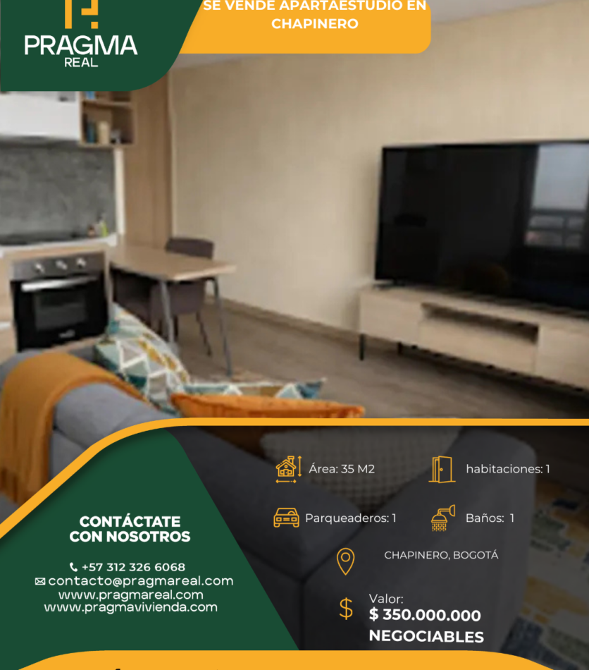 Se vende bonito apartamento con un área de 35 m2 ubicado en Chapinero.