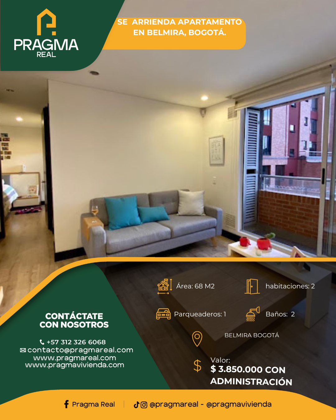 Se arrienda apartamento amoblado con un área de 68 m2 ubicado en Belmira, Bogotá.