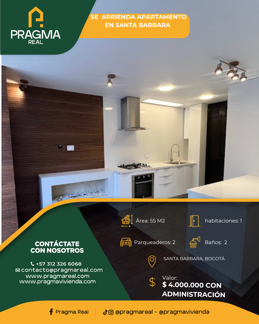 Se arrienda espectacular apartamento remodelado en Santa Bárbara, con un área de 55 m2.