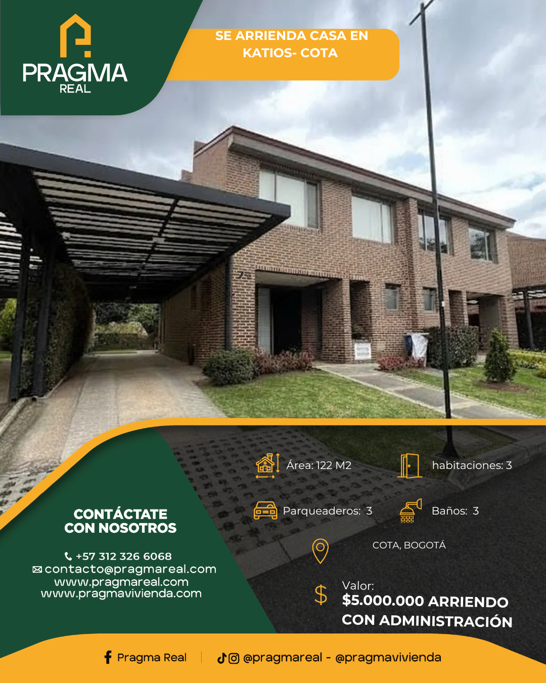 Se arrienda espectacular casa en Katíos – Cota con un área de 122 m2.