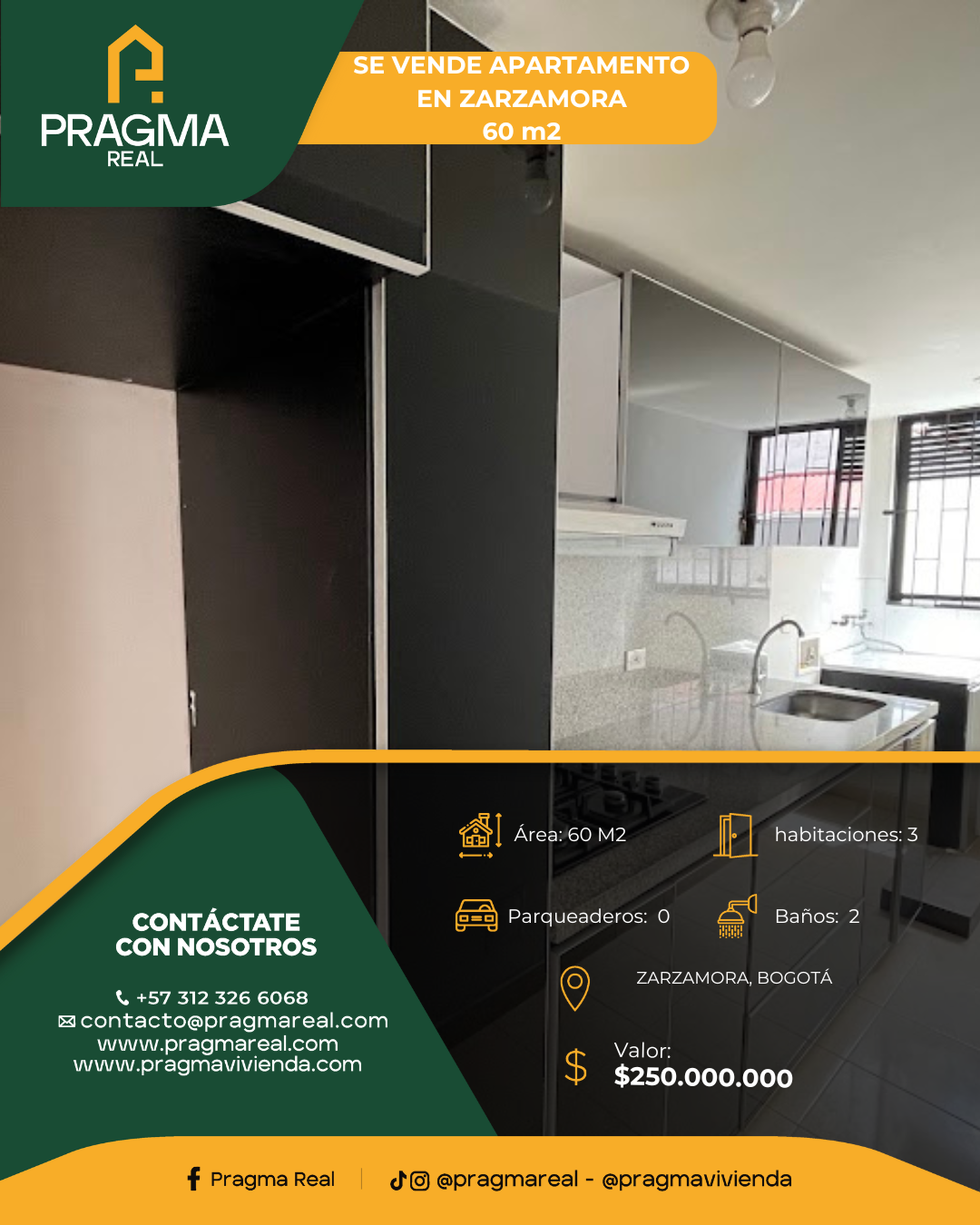 Se vende apartamento en barrio zarzamora, con un área de 60 m2.