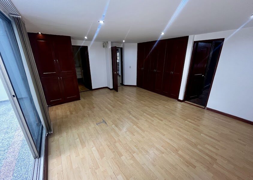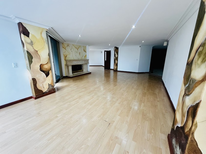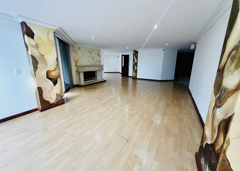 Las áreas sociales son igualmente impresionantes: una sala con terraza y chimenea invita a reuniones acogedoras, y un comedor independiente es ideal para cenas formales. La cocina, con su zona de comedor de confianza, es el corazón del hogar. Además, cuenta con una práctica zona de lavandería, alcoba del servicio con baño, baño social y un elegante hall de entrada. La propiedad incluye dos parqueaderos y un depósito.